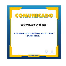 COMUNICADO Nº 03-2023 PAGAMENTO DA PECÚNIA DO R.U NOS CAMPI III E IV