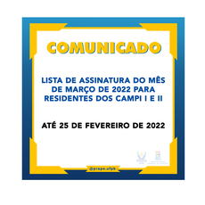 COMUNICADO Nº 10/2022 - Lista de assinatura de março de 2022 para residentes dos campi I e II