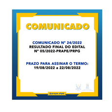 COMUNICADO Nº 24/2022 RESULTADO FINAL DO EDITAL Nº 05/2022-PRAPE/PRPG