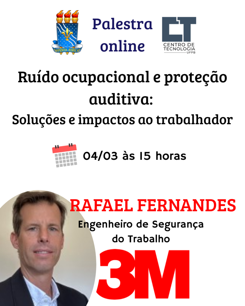 Palestra on line com o Engenheiro de Segurança do Trabalho Raphael Fernandes da 3M no dia 04 de março às 15h.